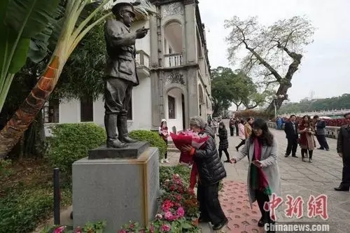 碧翠拢白霭,碎银洒西湖。10日,广东潮州涵碧楼周恩来雕像前,周恩来侄女周秉德向总理献上鲜花,随后肃立并三鞠躬致敬,涵碧楼是周恩来总理在潮汕地区开展革命工作的旧地,当天周恩来侄女周秉德、侄子周秉钧一行在这里重访了总理的足迹。