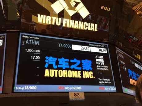 收盘价30.05美元 汽车之家IPO首日涨幅逾7成